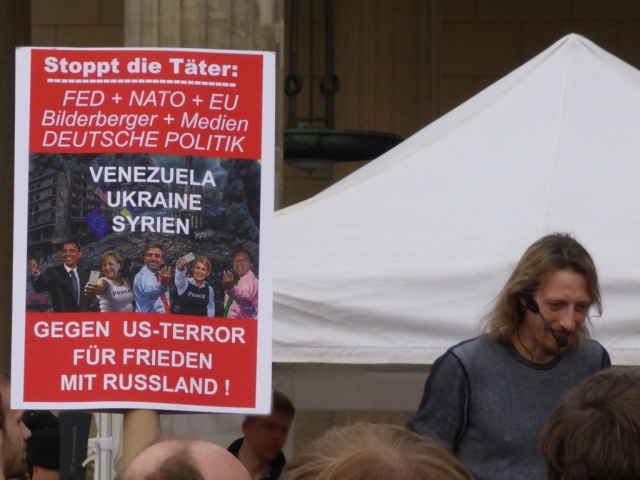 Nun aber hat eine seltsame Allianz aus Verschwörungstheoretikern, Rechtsradikalen und sonstigen Randexistenzen auch den “Frieden” für sich entdeckt. Ihre große Sorge ist, so kann man lesen, dass in der Ukraine ein Krieg ausbricht, und verantwortlich dafür seien die Vereinigten Staaten, genauer die Federal Reserve, die – in völligem Unverständnis für das amerikanische Währungs- und Finanzsystem – als “private Bank” bezeichnet wird, die von “den Rothschilds”, also Juden, aber das traut man sich dann doch nicht so offen zu sagen, kontrolliert werde, und, jetzt kommt’s: der große Retter soll Wladimir Putin sein. Propagandaminister des ganzen Unternehmens ist der Antisemit Ken Jebsen alias KenFM, Organisator ein gewisser Lars Mährholz. Unterstützt wird das ganze unter anderem von dem angeblich proamerikanischen Blog “politically incorrect” sowie von der deutschen “Anonymous”-Facebookseite und natürlich von allen, die in der Reichsdeppenszene Rang und Namen haben. Zusammen präsentieren sie ein wirres Amalgam verschiedenster politischer Ideologien, wobei sie immer das rauspicken, was ihnen gefällt, und das weglassen, was ihnen nicht passt. So gelingt es Jebsen etwa, sich zugleich auf Rudi Dutschke und Jimmy Carter zu berufen, und als Termin für die angeblichen Friedensdemonstrationen hat man sich den Montag herausgesucht, um damit an die Montagsdemonstrationen des Jahre 1989 anzuknüpfen – ein ziemlich infamer Schachzug, ging es doch damals darum, das von der Sowjetunion abhängige DDR-System zu beseitigen, während es heute darum geht, die Russische Föderation, mithin den Rechtsnachfolger der Sowjetunion, bei ihrer bereits vollzogenen Invasion der Krim und der womöglich noch anstehenden Invasion der restlichen Ost-Ukraine zu unterstützen.
