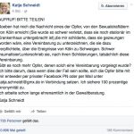 Auch Frau Schneidt löschte nach bekanntwerden des Schwindels den Beitrag und übernahm keine Verantwortung, sie klärte nicht darüber auf, dass sie ein gefälschtes Bild in Umlauf gebracht hatte.