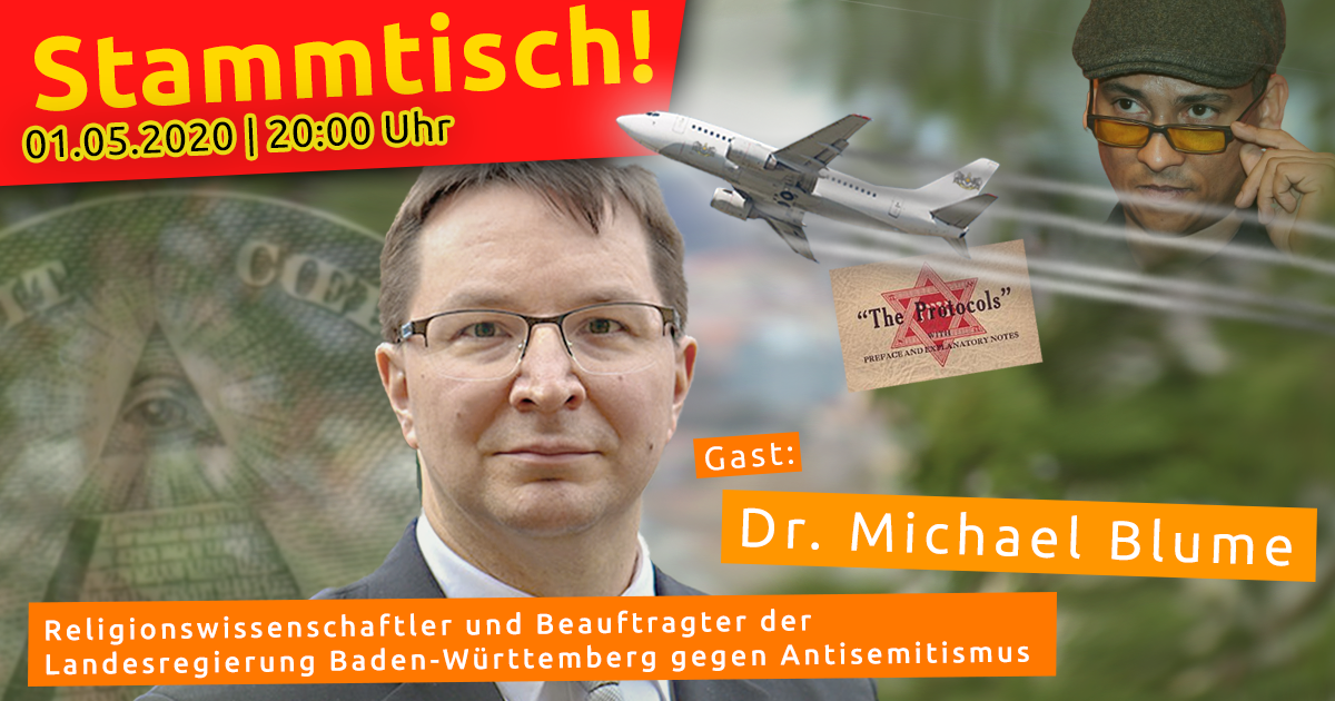 Freitag wird Dr. Michael Blume bei uns beim Stammtisch zu Gast sein. Der Religionswissenschaftler und Beauftragte der Landesregierung Baden-Württemberg gegen Antisemitismus ist unter anderem aktiver Blogger / Redakteur im SciLogs Blog “NATUR DES GLAUBENS Evolutionsgeschichte der Religion(en)” der Spektrum Verlagsgruppe und behandelt dort vor allem Verschwörungstheorien oder wie er sie selbst nennt: Verschwörungsmythen. Was genau diesen Unterscheid ausmacht? Was seine tägliche Arbeit als Antisemitismusbeauftragter ist? Das wird er uns am kommenden Freitag beim Stammtisch verraten.